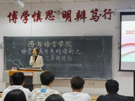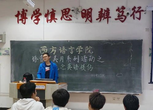 活动伊始,副经理王树杰首先针对前阶段的语音攻关任务作总结,随后向同学们强调了此次语音攻关月系列活动的重要性,希望同学们能够认真聆听,在今后的学习中运用标准的发音来提升自身的专业素养,感受英语语音的魅力。