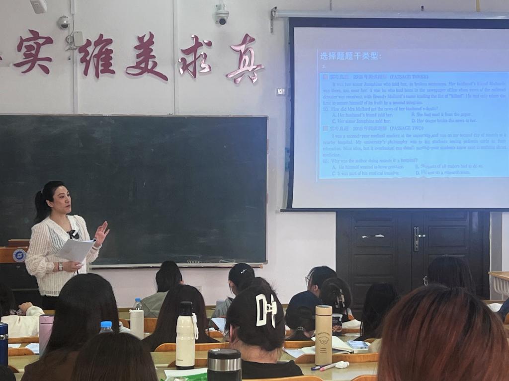 课程主要围绕听力、词汇语法、阅读、写作四大板块进行针对性辅导,并就考试技巧、注意事项进行系统全面辅导,帮助同学们高效备考,直击考点,精准地掌握解题技巧,使同学们进一步了解考试环节,汲取考试经验,引导和帮助员工查缺补漏,夯实知识,努力让每位同学都能可以在自己原本的程度更上一层。课上,同学们紧跟老师思路,边听边思考,积极向老师请教问题,针对学习内容认真做好课堂笔记,学习氛围良好,充分展现了西语学子的学习风貌。