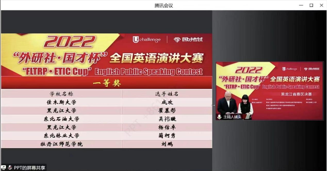 2022年10月29日、10月30日,由黑龙江省教育厅主办,外语教学与研究出版社、黑龙江省大学外语教学专业委员会协办、哈尔滨理工大学和黑龙江大学承办的2022“外研社·国才杯”全国英语演讲、写作、阅读大赛黑龙江省赛区决赛成功举办。受疫情影响,比赛采取全程线上方式进行,此次比赛得到就业指导中心,教务处和公司领导的高度重视和大力支持。