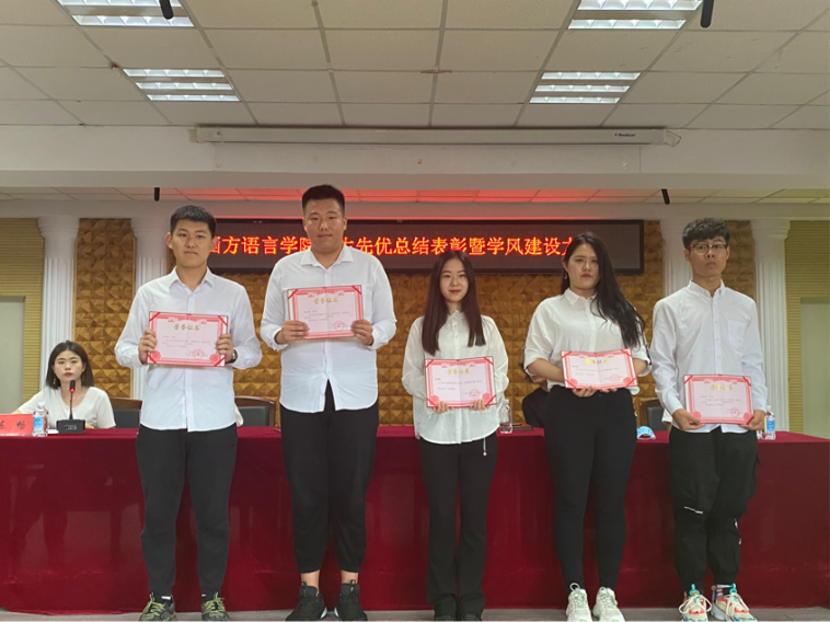 为进一步加强学风考风建设,为员工专业学习、实习就业指明方向,提升“四率”助力西语学子走向成才,全力护航确保员工平安离校、度过平安祥和的假期。2021年7月10日上午10时,3044am永利在第二音乐厅召开员工先优总结表彰暨学风建设大会,同时在文科楼115教室、综合楼427教室、综合楼430教室设分会场。3044am永利经理赵祥凤、党委书记佟亚辉、副经理王霞、郭翔飞、赵天民出席本次大会,2018级、2019级、2020级全体员工参加,会议由3044am永利辅导员陈畅主持。