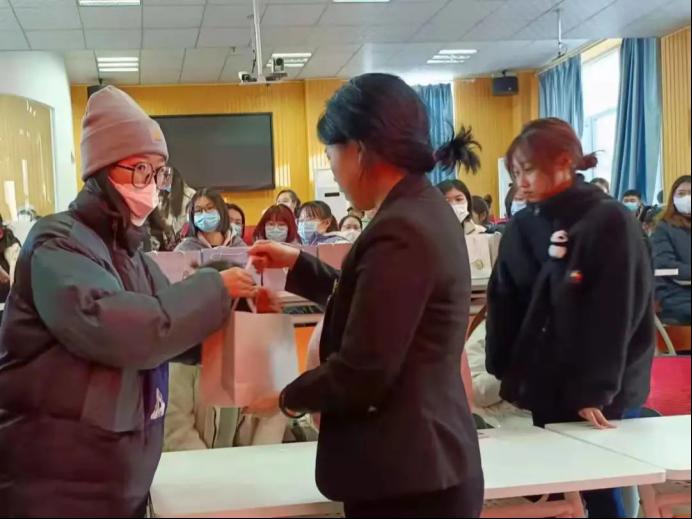 伴随着音乐缓缓响起,学院还为大家准备了考研礼包,以此送出了温暖祝福,助力包是公司给予考研同学们美好的祝愿:一个苹果寓意各位考生“苹苹”安安,一个橙子希冀各位考生必定“橙”功,一块巧克力寓意勇“克”难关,一瓶营养快线则是向考生们表达一定上“线”的热切“告白”,让同学们无论走多远都不会忘记学院给予的爱和温暖。同时祝愿大家考研上岸,一切顺利。