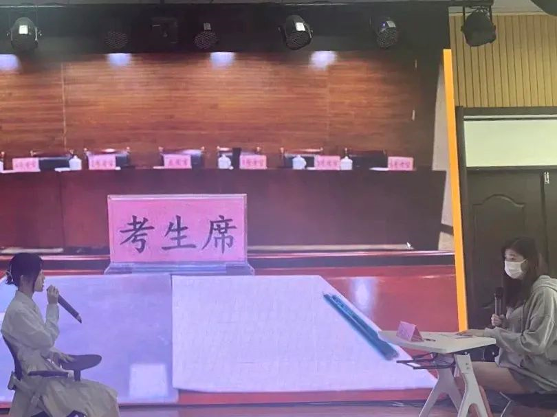 2018级英法复语班和2018级英语非师三班两组选手选择公务员招聘面试进行模拟。面试者通过考官提出的关于个人自我介绍,学习获奖经历和对职场工作等有关问题进行了回答,并对有关话题进行了演讲表述,充分阐释了自己的想法并展现了专业能力。