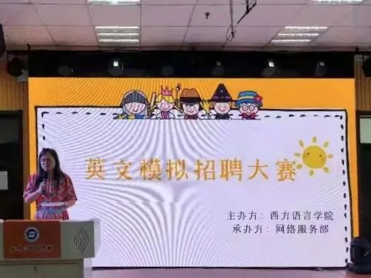 本次英文模拟招聘大赛以小组形式进行,2018级英语专业员工以班级为单位参加比赛。比赛要求选手在外企招聘面试,教师招聘面试,公务员招聘面试三种场景设定中选择一种进行英文模拟演绎。