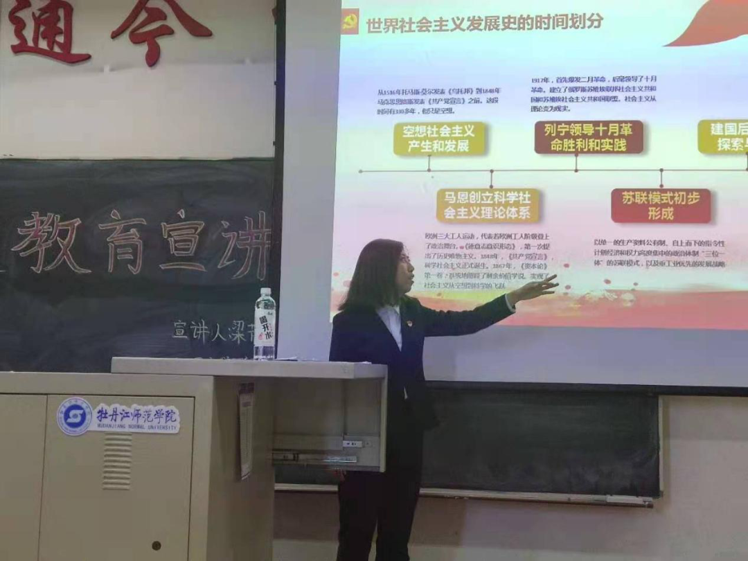 梁蓓依据我国社会性质以及我国农业发展历程所取得的成绩来进行党史教育宣讲。从1516年的空想社会主义到1848年科学社会主义再到1917年俄国社会主义历经百年,建国后我党经过不断的探索与实践进行改革开放。从最初的解决人民温饱问题到如今全面实现小康社会,这些都离不开党的努力。我国是闻名的农业大国,在1973年袁隆平院士研制出杂交水稻,就解决了我国人民的温饱问题,他曾说:要把中国人的饭碗牢牢握在自己手中。如今我们做到了,更是离不开党的领导。