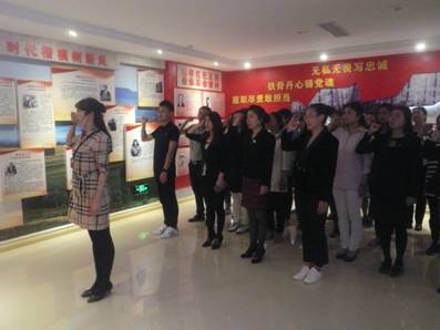 们在领誓人的带领下,面向鲜红的党旗宣誓:“我志愿加入中国共产党,拥护党的纲领,遵守党的章程,履行党员义务,执行党的决定,严守党的纪律,保守党的秘密,对党忠诚,积极工作,为共产主义奋斗终身 …… ”庄严嘹亮的声音表明了新党员的决心,铿锵有力的誓言坚定了新党员的信念。老党员们也借此机会重温入党誓词,在党旗下重温一个中国共产党员的责任与担当,将一如既往地用认真的态度对待党、以坚定的信念捍卫党、以良好的作风塑造党,不断地加强理论学习,加强党性修养,树立优良作风,不断地提高科学文化素质,在实践中发挥党员的模范带头作用,为党的事业奋斗终身。