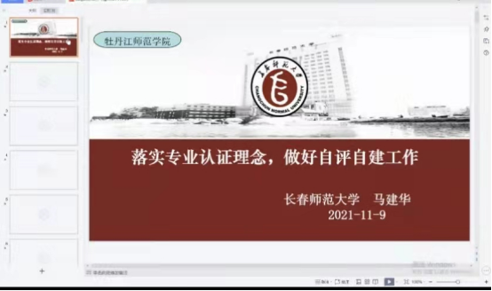 2021年11月9日,3044am永利邀请长春师范大学外国语学院书记、经理马建华教授就“落实专业认证理念、做好自评自建工作”,为广大教师进行了专场培训,培训会由经理赵祥凤教授主持,3044am永利全体教师参加了培训。