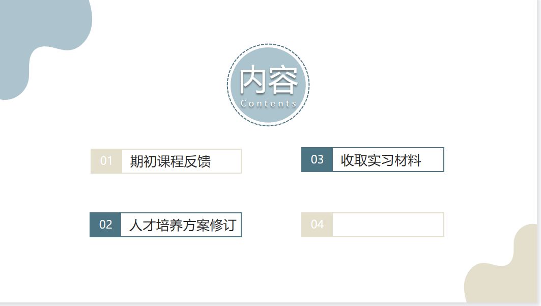 在期初课程反馈中各位老师积极发言,把两周以来各班的课堂情况作以反馈,主要表现在:三个专业班课堂听课效果较好,积极互动,但是个别同学课堂回答问题不积极,作业完成情况总体较好。针对目前这种情况,各位老师提出的解决方案是:加大课堂提问次数,对课堂回答不是很积极的同学耐心引导,补齐知识缺口。