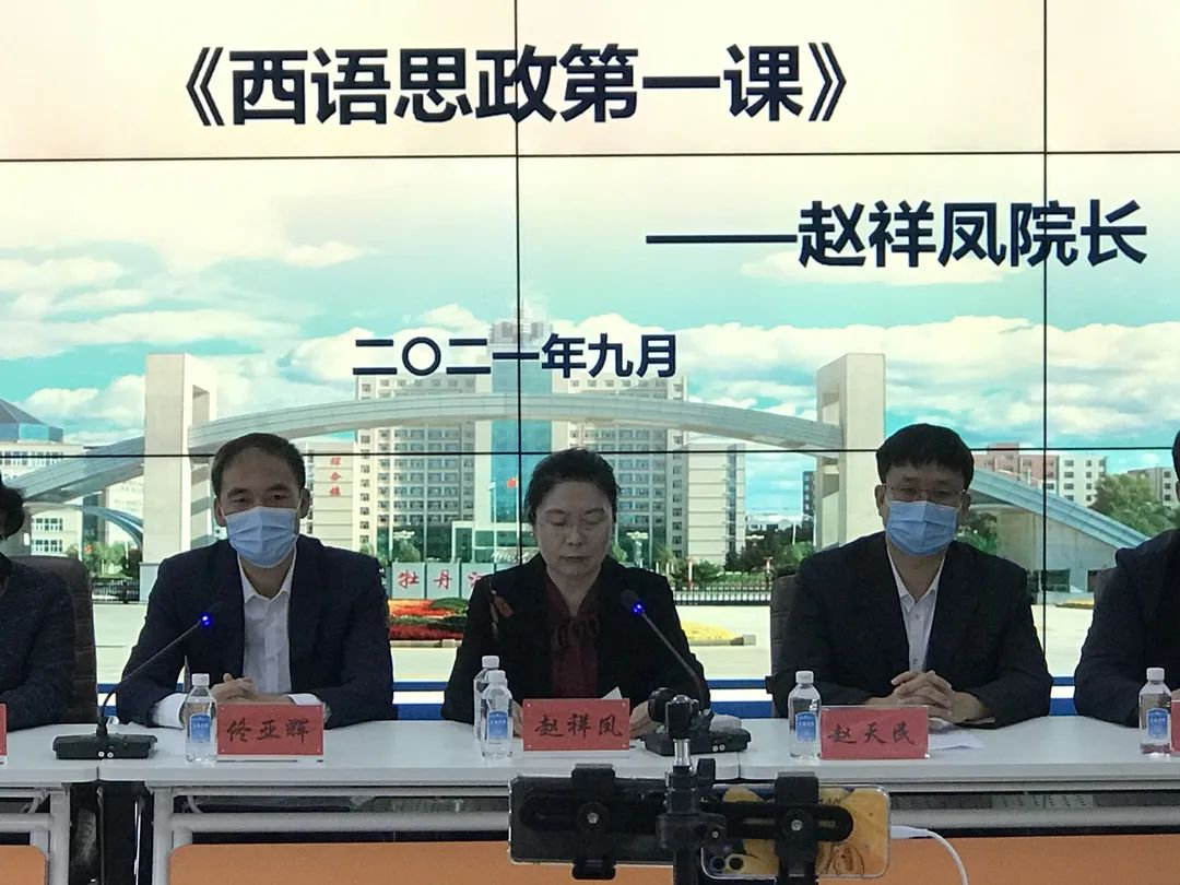 经理赵祥凤为西语2021级新生做了思政第一课,赵经理从社会主义核心价值观个人层面的爱国、敬业、诚信、友善讲起,结合专业特点和员工实际,与同学们共享了如何树立正确的世界观、人生观、价值观,如何在语言学习中传承中国文化,中华文明,她希望同学们能够在中西文化互鉴中提升内涵,做一名知行合一的西语人。