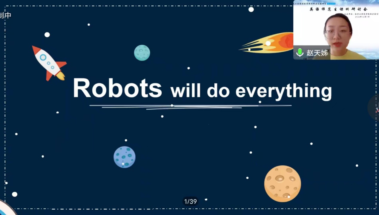 大庆师范学院赵天姊同学,黑龙江外国语学院王可同学,永利集团冯淏琪同学进行了现场说课与课例展示。他们的课例题目分别是“Robots Will Do Everything”、“When Hamlet Meets Peking Opera”、“John Snow Defeats King Cholera”。