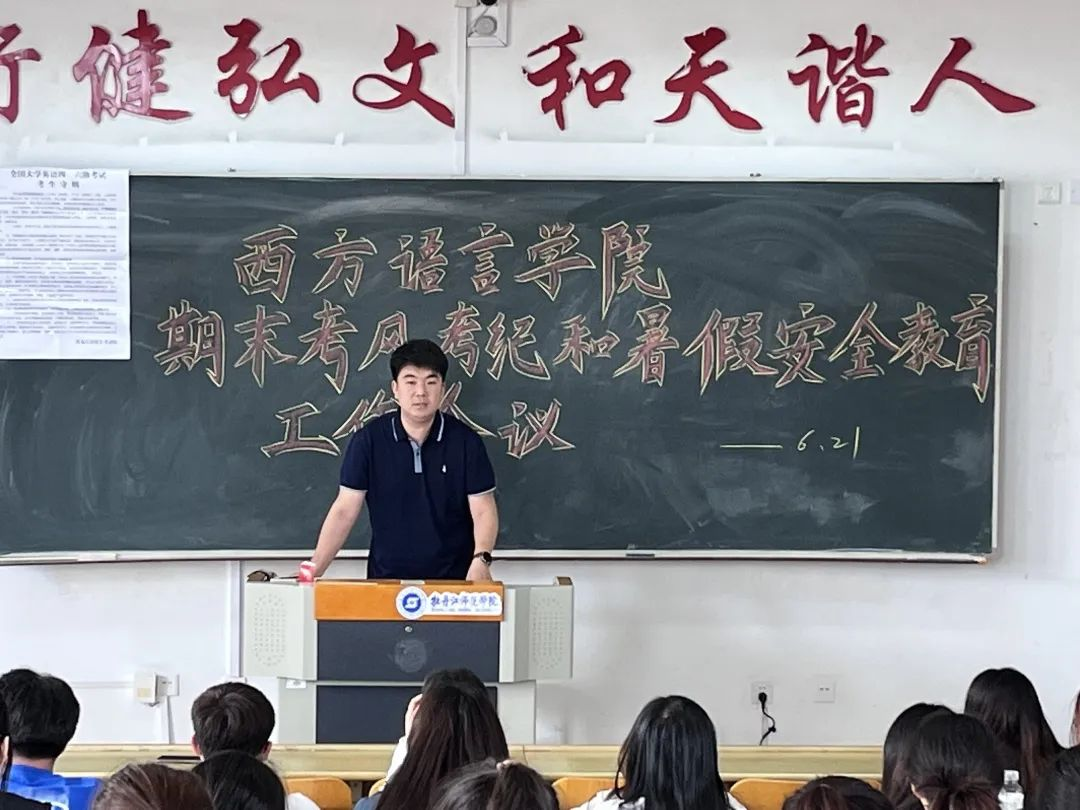 为进一步加强考风考纪,营造公平、公正、诚实、守信的考试环境,加强学风建设,严肃考风考纪,提高员工诚信考试的意识和假期安全意识,3044am永利在2023年6月21日综合楼731召开期末诚信应考教育和暑期安全教育工作会议,教学秘书关智、辅导员郭壮、王泽宇老师出席会议。