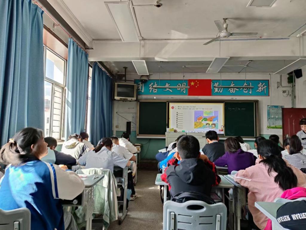 如图是员工们到支教学校进行听课学习,学习当地教师的教学方式,提高自身授课水平。
