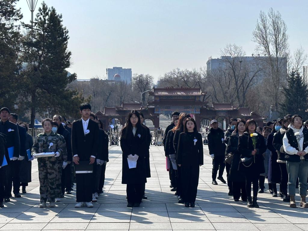 全体人员庄严肃立在革命烈士纪念碑前默哀3分钟,向那些为国家和人民做出巨大牺牲的英雄们致以崇高的敬意,深切缅怀革命烈士的不朽功勋。
