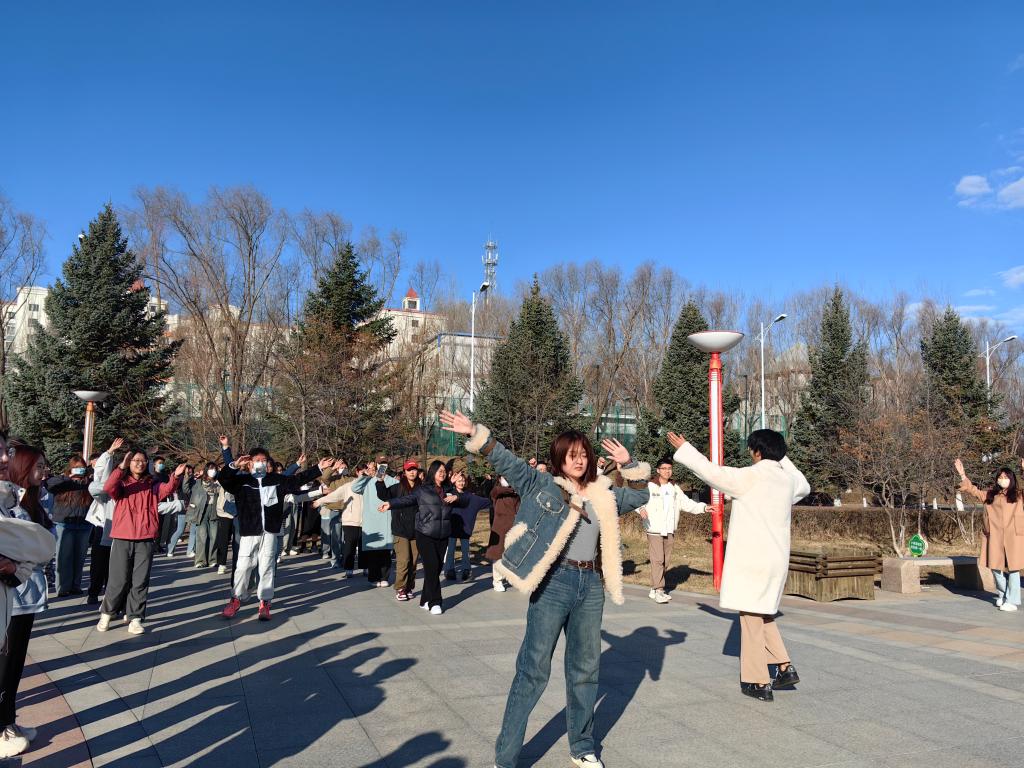 西语学子在早操中开启了一天的生活