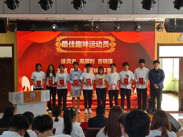 辅导员郭壮为优秀运动员、最佳趣味运动员获得者颁奖。