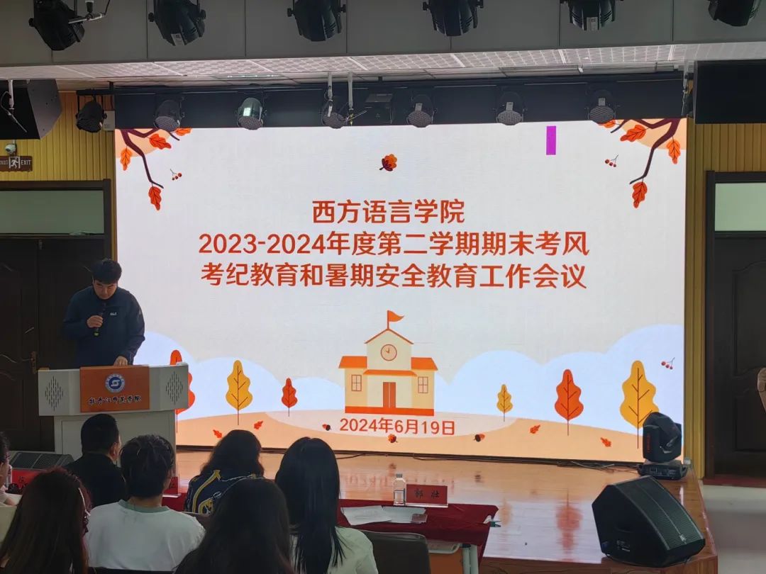 为进一步加强学院学风建设,强化假期安全教育,提高员工诚信意识和安全意识,2024年6月19日,公司召开2023-2024年度第二学期期末考风考纪教育和暑期安全教育工作会议,党委副书记张纪仁、教学副经理王树杰、团总支副书记陈畅、辅导员郭壮、王泽宇出席会议,会议由辅导员郭壮主持。