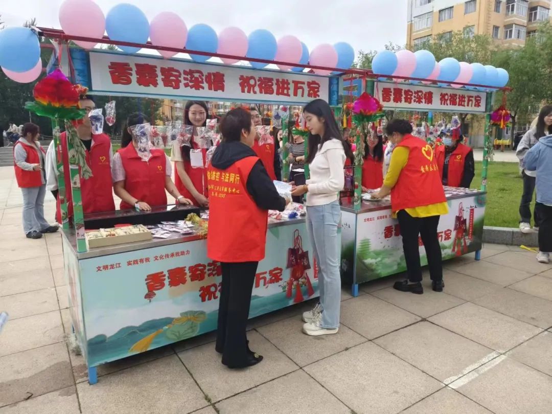 在现场,演员们倾尽全力,为观众呈现了一场场精彩绝伦的表演;同时,本院的志愿者们也是一道靓丽的风景线,他们满怀热情,全身心地投入到活动中。他们尽职尽责地维护着活动现场的秩序,确保每一个细节都得到妥善处理,让整个活动井然有序、有条不紊地进行。志愿者们不仅协助活动的顺利进行,还耐心地向游客们介绍香素文化的深厚内涵和历史渊源,让每一位游客都能深入了解这一传统文化的魅力,并带着对香囊的喜爱离开。他们的专业素养和亲切态度,赢得了游客们的一致好评。活动结束后,志愿者们并没有松懈下来、而是不辞辛劳地打扫卫生、清扫场地,确保现场恢复如初,为下一次活动的举办奠定了良好的基础。他们展现出的责任心和专业素养,让人深感敬佩和赞叹。