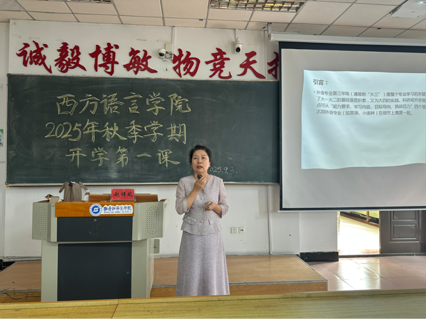 经理赵祥凤结合当今就业形势深入剖析了外语专业员工当下所面临的机遇与挑战,指出外语专业学习有着清晰的阶段脉络:大一是“入门适应”,大二为“基础巩固”,大四是“成果输出”,而大三则是“核心能力构建+未来路径定型”的关键,表示同学们要明确今后方向,针对性提升专业深度与专项技能,为长远发展打牢基础。此外,赵经理倡导同学们积极参加实习、实践活动,将课堂所学知识运用到实际工作中,积累宝贵的实践经验,提前适应职场环境。最后。赵经理希望大家把握各阶段重点,以实践锤炼真本领。
