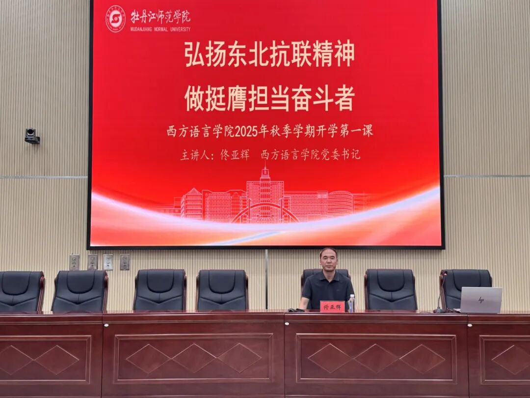 党委书记佟亚辉以“弘扬东北抗联精神,做挺膺担当奋斗者”为题,借光影中的历史场景唤起同学们的情感共鸣;又结合纪念中国人民抗日战争暨世界反法西斯战争胜利80周年阅兵式的庄严场景,强调历史传承的重要意义。随后,佟书记为同学们介绍东北抗联烈士事迹与抗联精神内涵以及东北抗联英雄事迹,深入阐释抗联精神内涵,让同学们真切体会到这份精神的伟大与崇高,进一步激发了大家的责任担当。最后,佟书记向大家提出三点希望:一是提升思想高度,做志存高远、有梦想的牡师青年;二是探究学业深度,做勤奋专精、有情怀的牡师学子;三是拓展知识宽度,做博学善思、有担当的牡师英才。