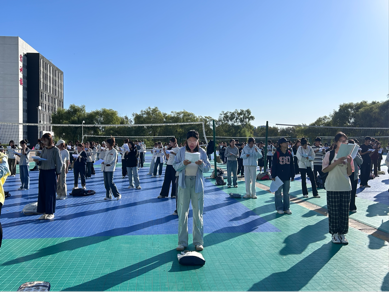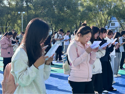 2025年9月15日上午7时,3044am永利于排球场组织开展2025级新生“晨语飞扬”主题晨读活动,党委书记佟亚辉、经理赵祥凤、党委副书记张纪仁、教学副经理王树杰亲临现场进行指导,2025级全体新生参与活动。
